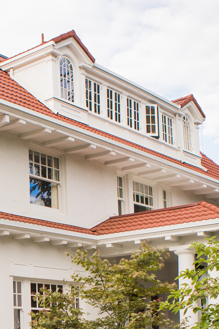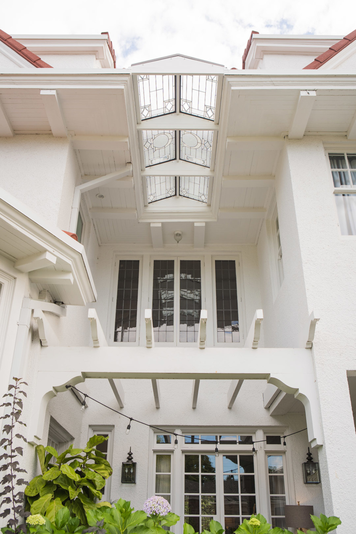 An immediate need for a new roof kicked off the extensive restoration of this stunning Irvington home. In addition to the roof, all dormer, window, sash and trim were repaired. Roof cornices were taken apart, repaired or replaced. New custom metal gutters provide a seamless look and a custom, work-of-art porch skylight was an added showpiece.